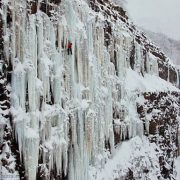 The first two pitches have been miserable. The ice is fine, or at least good enough, but the wind and low temperatures are BRUTAL. Up to this point, I’m kicking myself for getting out of bed and passing up on sleeping in with my girlfriend, wasting the day. My bed is warm, I am not. My glasses are completely frozen over and stuffed uselessly in my chest pocket. My eyebrows are adorned with ice sculptures. I can barely open them. I’ve already had at least one bout of mid-pitch screaming barfies.
